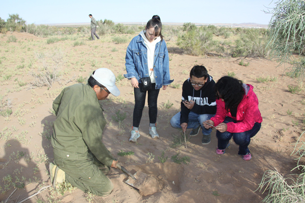 2017年9月25日,由蘭州大學(xué)草地農(nóng)業(yè)科技學(xué)院博士后趙琪老師帶領(lǐng)3名博士生和2名碩士研究生來雅鎮(zhèn)與實(shí)業(yè)公司開展野外實(shí)地試驗(yàn)工作。課題組在雅布賴圍欄封育區(qū)內(nèi)選擇三片不同樹齡和土壤類型的梭梭林,運(yùn)用不同的根際有益菌進(jìn)行了肉蓯蓉接種試驗(yàn)工作,接種面積120畝,約6000窩,預(yù)計(jì)此項(xiàng)工作于2017年10月20日前結(jié)束。下一步課題組將按照試驗(yàn)方案開展認(rèn)真細(xì)致的接種試驗(yàn)、數(shù)據(jù)收集和科學(xué)分析工作,為今后大面積推廣肉蓯蓉種植和提高接種成活率提供可靠的理論依據(jù)。
