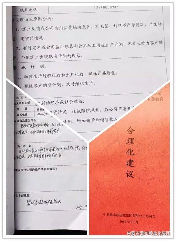 一是在采鹽、精鹽分廠黨支部,通過學(xué)習(xí)研討、講黨課等形式,教育引導(dǎo)黨員堅(jiān)定理想信念,牢記黨的宗旨,不忘初心,牢記使命,以高度的責(zé)任心和使命感,以銳意進(jìn)取的精神、昂揚(yáng)向上的斗志和飽滿的工作熱情投身各項(xiàng)生產(chǎn)。組織開展“攻堅(jiān)克難抓落實(shí)”行動,動員全體黨員在急難險重任務(wù)中勇挑重?fù)?dān),針對當(dāng)前原鹽、食用鹽生產(chǎn)中存在的問題,要求分廠黨員每人至少提一條改進(jìn)工藝設(shè)備、提升安全質(zhì)量效益等的合理化建議,努力把生產(chǎn)效率、安全質(zhì)量等工作提升到新的檔次。二是在機(jī)關(guān)所屬各黨支部開展“我為管理建一言”、“我為發(fā)展獻(xiàn)一策”活動,針對公司發(fā)展過程中存在的短板問題,組織黨員為提升企業(yè)現(xiàn)場管理、質(zhì)量管理、安全管理水平以及拓展食用鹽市場、盤活公司閑置資產(chǎn)等方面出謀劃策,群策群力助推企業(yè)走出困境。