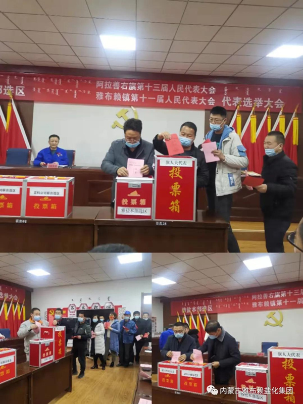 此次雅鹽化集團公司聯(lián)合選區(qū)旗、鎮(zhèn)木人大代表換屆選舉,共劃分旗級人大代表選區(qū)1個、鎮(zhèn)級人大代表選區(qū)3個,共計728名選民參加了旗、鎮(zhèn)人大代表投票。