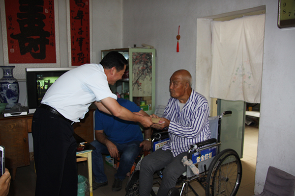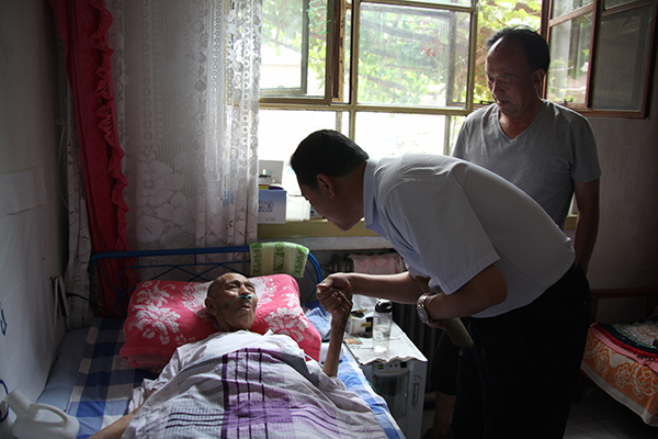 張憲坤詳細(xì)詢問(wèn)崔文彪老同志的病情 在每位離休老同志的家中,張局長(zhǎng)一行代表盟委、行署向老干部送上問(wèn)候和祝福,關(guān)切地詢問(wèn)他們的身體情況和生活情況,深入了解他們的各項(xiàng)生活費(fèi)用和醫(yī)藥費(fèi)落實(shí)情況,并為每位老人送上1000元慰問(wèn)金,祝愿他們保重身體,安享晚年。三位離休老人非常感動(dòng),對(duì)盟委、行署對(duì)他們的關(guān)心和厚愛(ài)表示感謝。