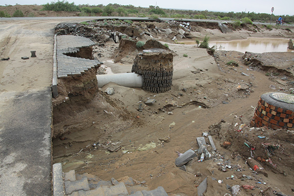 鹽湖采區(qū)遭受污染 供銷分公司庫房房頂毀壞 精鹽分廠粉鹽品遭受雨水浸泡 鎮(zhèn)區(qū)馬路被破壞 居民院落外墻被泡塌 泄洪口被沖毀 集團公司鹽湖受損最嚴重。山洪自西向東灌入正在生產(chǎn)的鹽湖采區(qū),不僅結(jié)晶池遭到污染,挖掘機歸攏的鹽品也全部溶化。已經(jīng)生產(chǎn)出的半成品鹽坨遭受暴雨清洗,僅雨水溶化的鹽品近2千噸。精鹽分廠剛剛生產(chǎn)的粉洗鹽,雖及時苫蓋,也沒有躲過雨水浸泡,600噸成品報廢。據(jù)統(tǒng)計,鹽湖直接經(jīng)濟損失達500多萬元。 因暴雨侵襲,采鹽分廠部分院墻倒塌,供銷分公司3間供應(yīng)庫房房頂毀壞,機運分廠和公司辦公樓大面積漏水,供熱分公司2000米暖氣管溝遭到雨水漫灌,30處檢查井損毀,幾乎每個單位都受到重創(chuàng)。 由于公司部分職工居住的平房還是土木結(jié)構(gòu),山洪來襲,泄洪口排水不及,致使3家居民院墻被沖塌,1家居民小房子外墻被泡塌,另有3棟樓房地下室被山洪漫灌。100多戶居民房屋漏水嚴重。危急時刻,政府相關(guān)部門及時組織疏散受災(zāi)群眾,避免了人員傷亡。 山洪來勢兇猛,小鎮(zhèn)唯一的防洪渠跨馬路部分被沖毀,鎮(zhèn)區(qū)馬路多處遭到破壞。